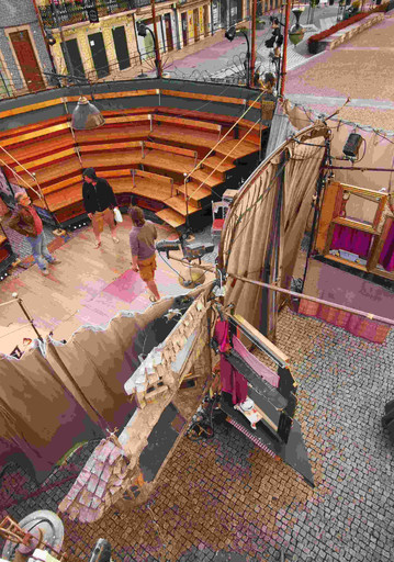 Le théâtre à été construit en 2018 par Alice Zapata et Arnaud Vidal. Constructeur de décor de théâtre et scénographe depuis plus de 30 ans, ce dernier conçoit un petit écrin sur mesure, dans la tradition d’art forain qui nourrit depuis toujours ses créations. Une arène faite de bois et d’acier, close par une toile peinte de 15m de long qui accueille un gradin pentu inspiré des anciens amphithéâtres de médecine. Chaque détail y est soigné, permettant au spectateur un confort et une bonne vision de l'œuvre, l’invitant à profiter au maximum du moment passé, sous les étoiles.